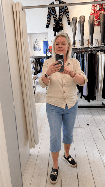 Pasformen er lige op og ned, så der er plads til lår, læg og kvindelige former.