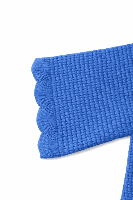 Der er et strikket takket mønster på kanten af ærmer og bunden.