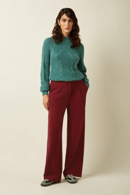 Farven er smaragdgrøn, som er en kølig tone, der passer til rigtig mange hudtoner og andre farver.