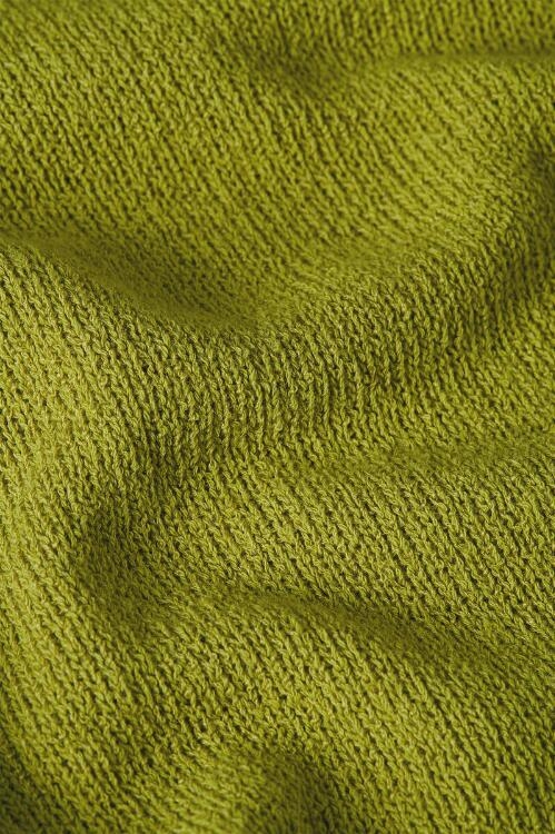 Olivengrøn bluse med rund hals og korte ærmer, der har et lille ombuk.