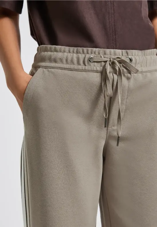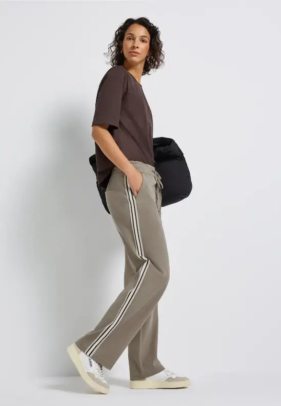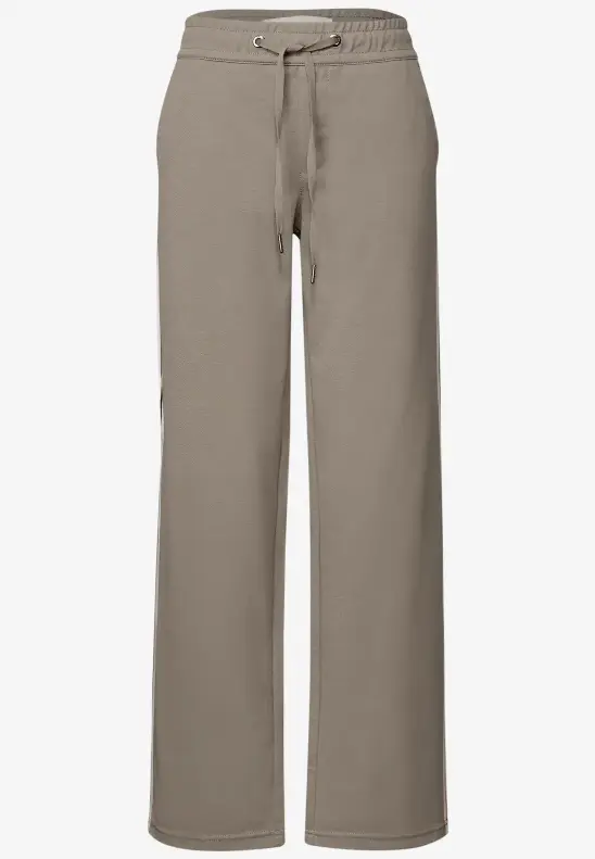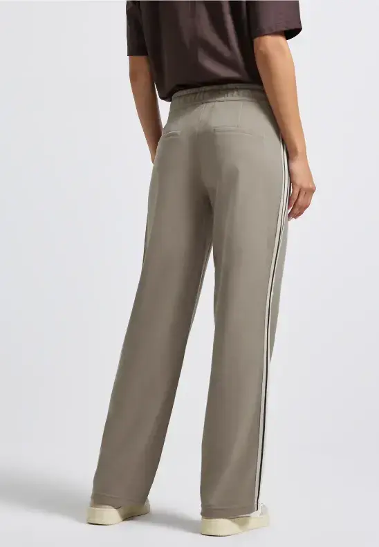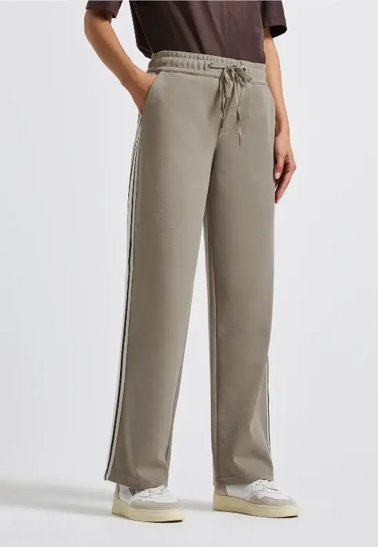 Pæne og klassiske sandfarvede  jerseybukser med vidde og gallon på ydersiden af benet. Bukserne er fra Street One