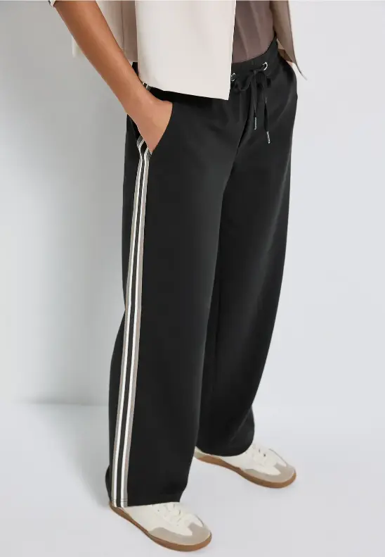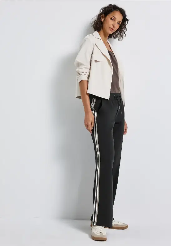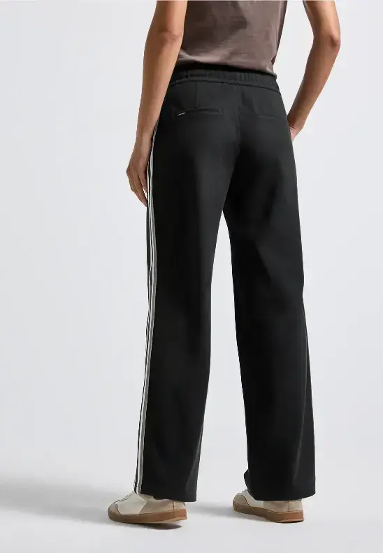 Pæne og klassiske jerseybukser med vidde og gallon på ydersiden af benet. Bukserne er fra Street One