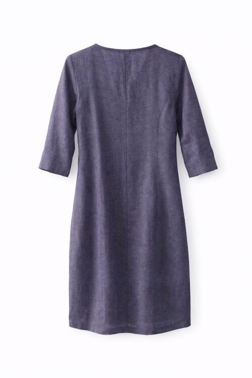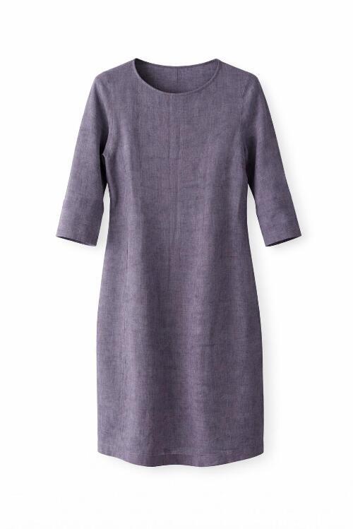 Hørkjole med rund hals og 3/4 ærmer.