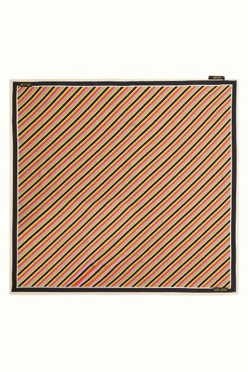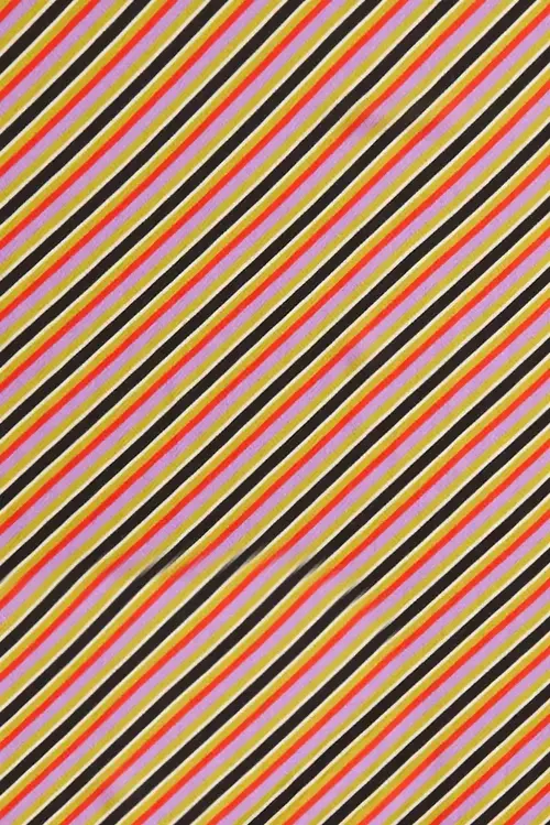 Farverne i de diagonale striber er; olivengrøn, koral, lilla, sort og råhvid.