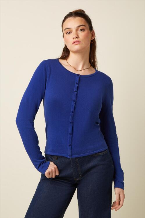Cardigan med rund hals i en smuk lysende mørkeblå farve