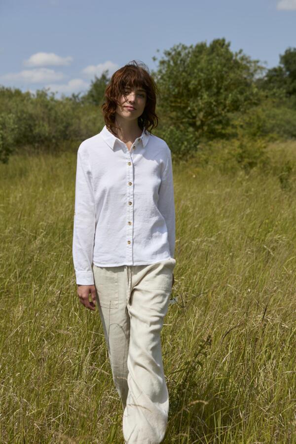 Sand farvet hørbukser med vidde og skrålommer fra Pulz.