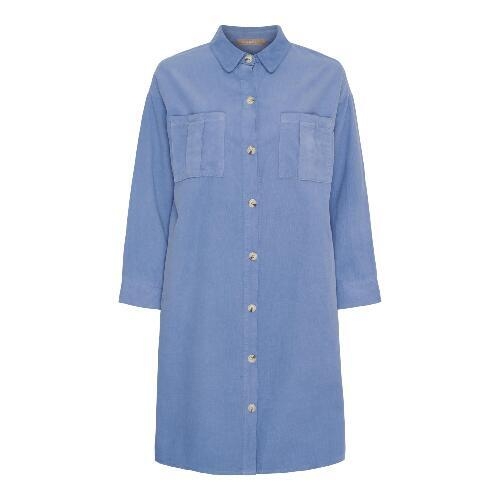 Kjolen er med skjortekrave, der er en brystlomme i hver side.