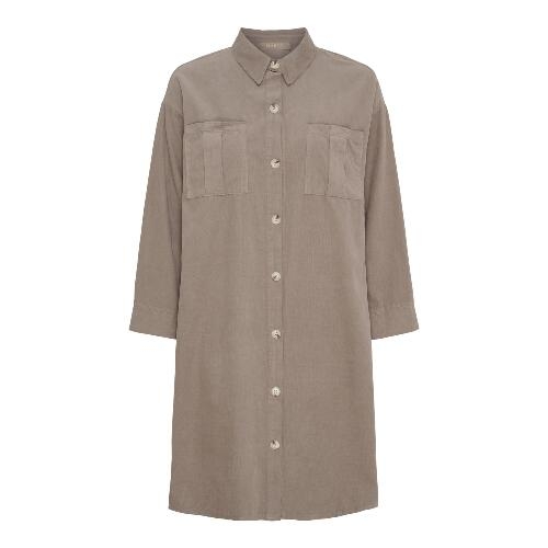 Kjolen er med skjortekrave, der er en brystlomme i hver side.