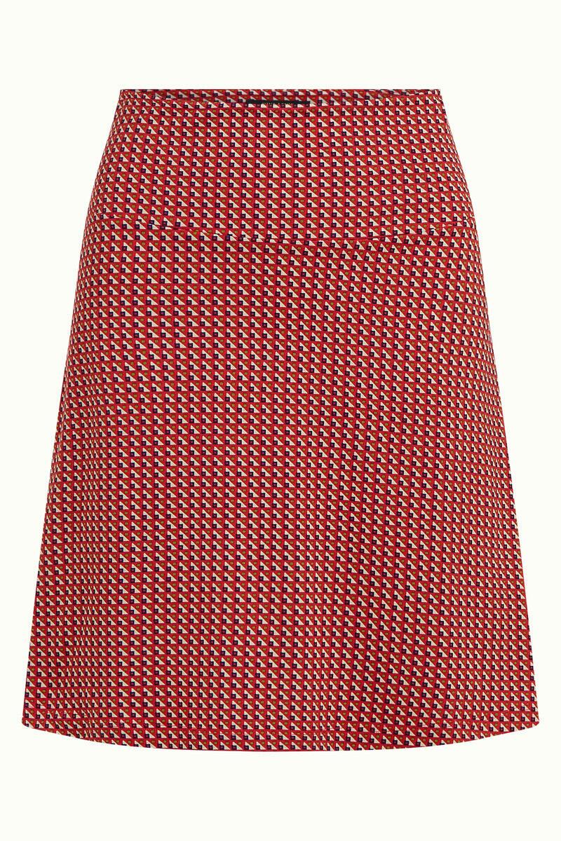 Klassisk nederdel med et smukt grafisk print i rød, blå, olivengrøn og hvide farver.