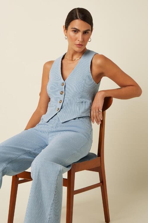 Mælkedrenge stribede bukser med høj talje og brede lår og benvidde.
