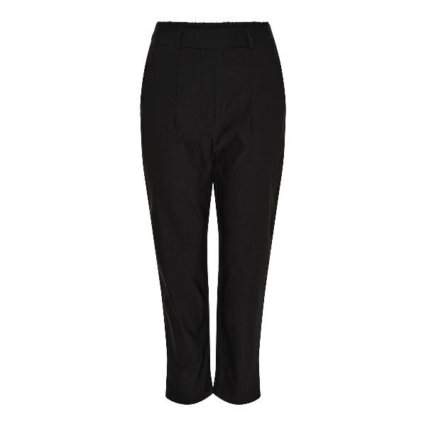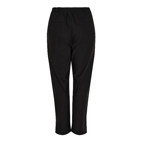 Sorte bukser med almindelig taljehøje og elastisk linning, der er glat foran, så den sidder pænt.