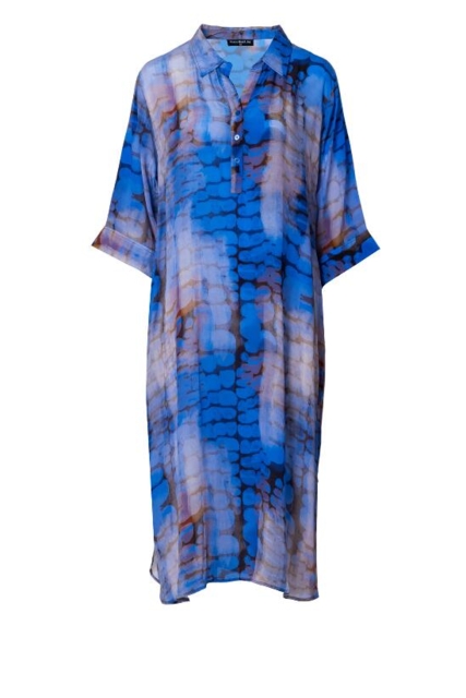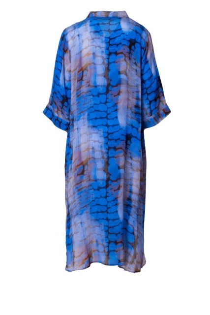 Silkekjole med print i blå farver fra Peace Heart Joy.