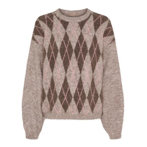 Ulden strikbluse med klassisk mønster i gråbrun og rosa farve fra Marta du chateau.
