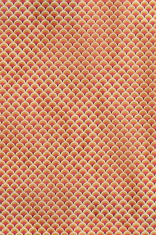Mønstret er bygget op af halvcirkler i tætte forskudte rækker, så det næsten ligner bølger.