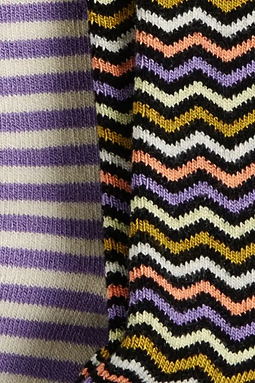 De ene par er i en klar blå det andet par er i et zig-zag mønster i mange forskellige farver.