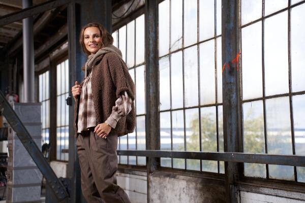 Afslappet kortærmet jakke/ vest med ærmer med lynlås i brunt bouclé fleece fra Marta du chateau.